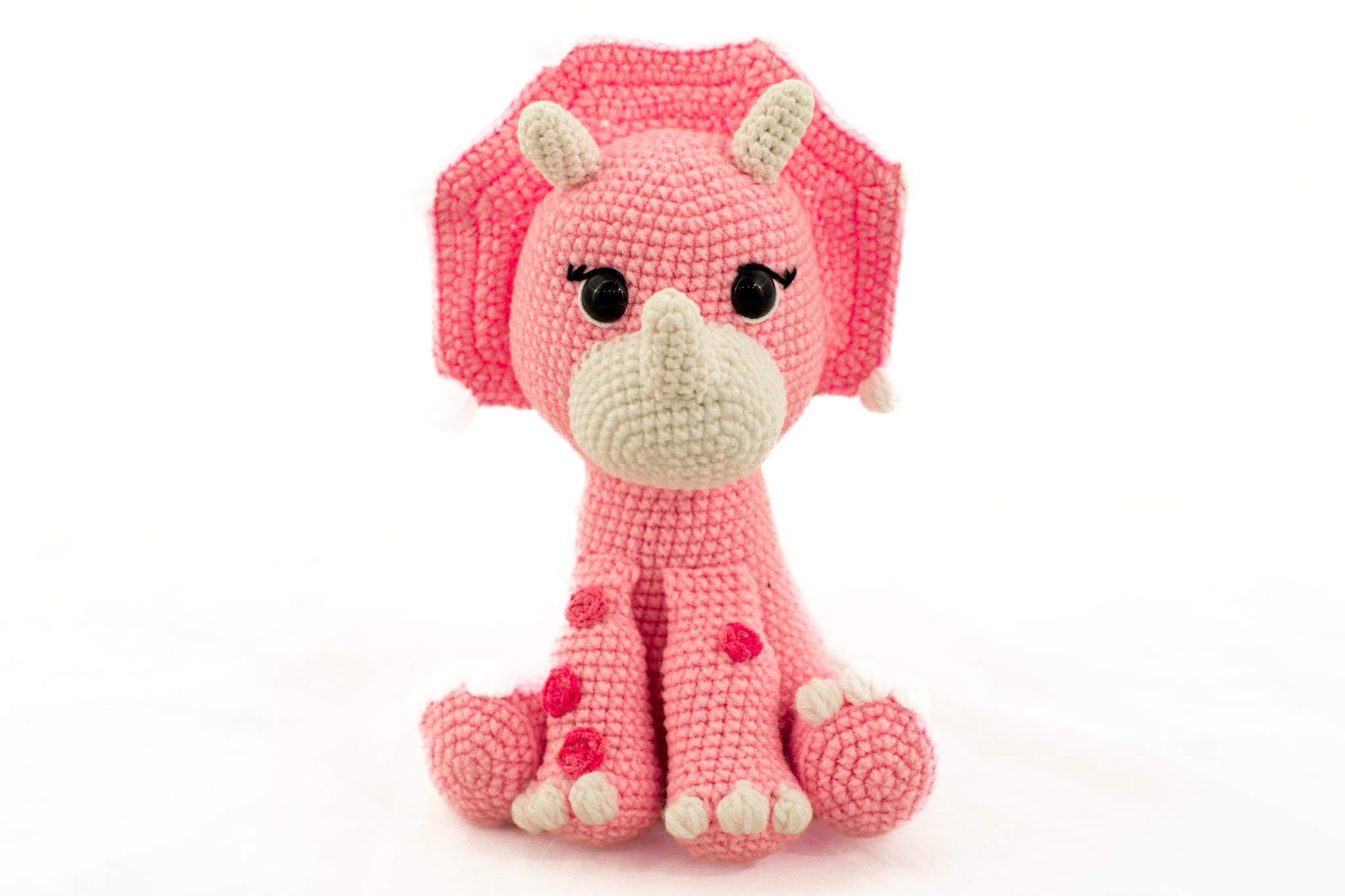 Triceraptor amigurumi tejido a mano con hilo suave y resistente, diseñado con colores vibrantes y detalles cuidadosamente bordados que dan vida a este dinosaurio en versión tierna. Su forma compacta y sus cuernitos característicos lo convierten en una pieza adorable para decorar, coleccionar o regalar. Ligero, duradero y lleno de encanto, es perfecto para amantes de los amigurumis y de los dinosaurios.